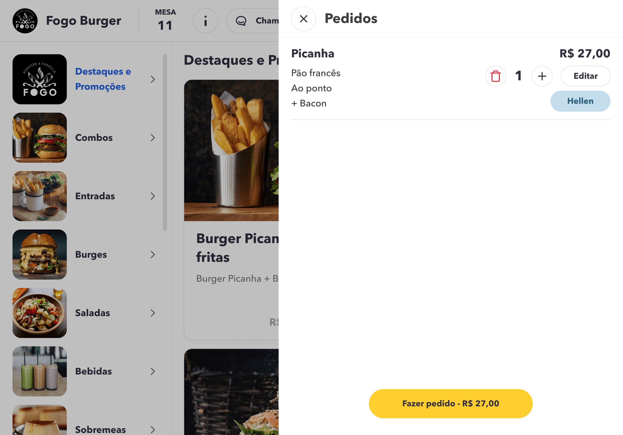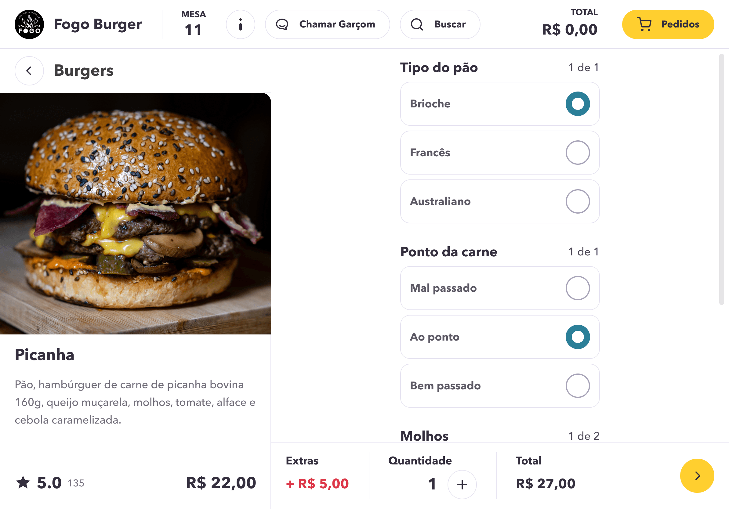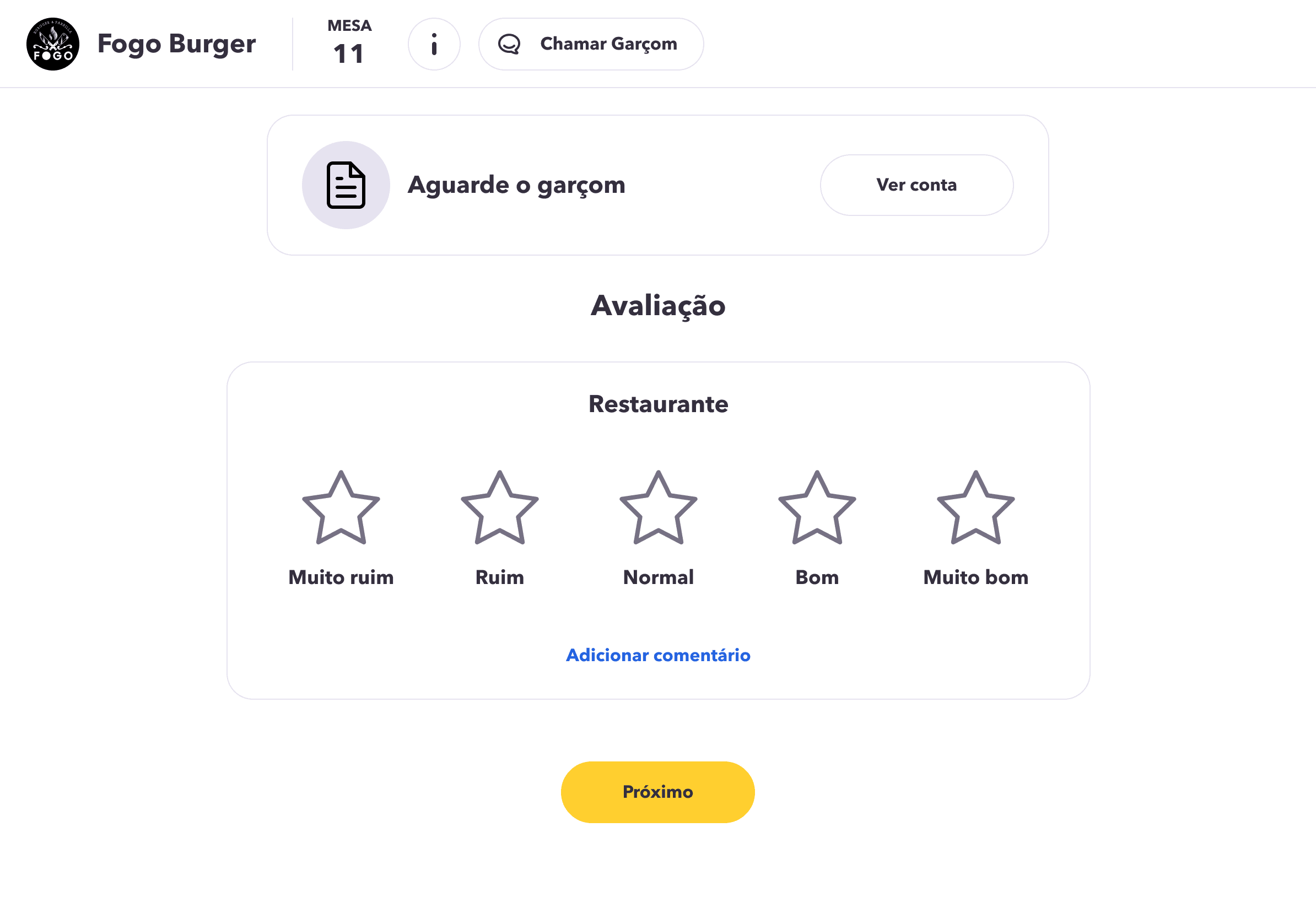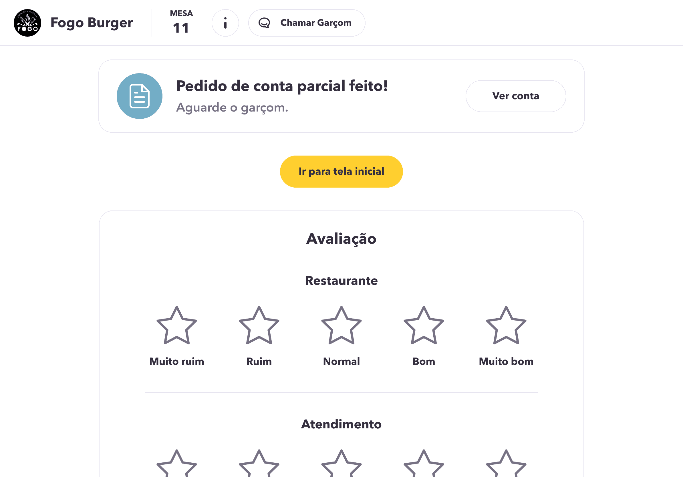 Option to call the waiter.