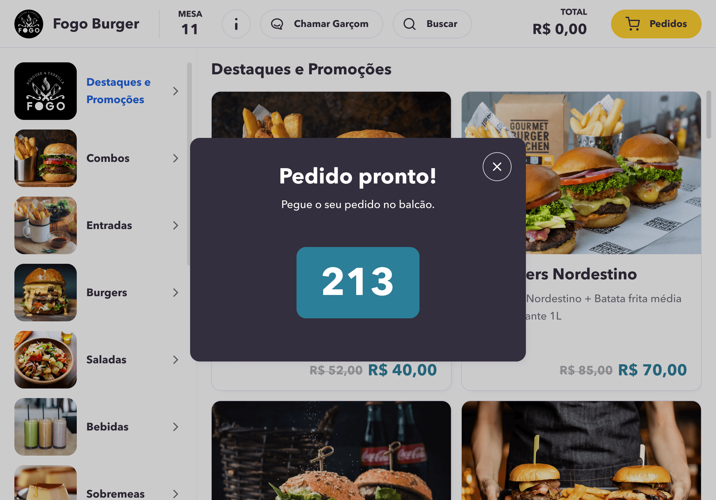 Notification to pick up the order at the counter.