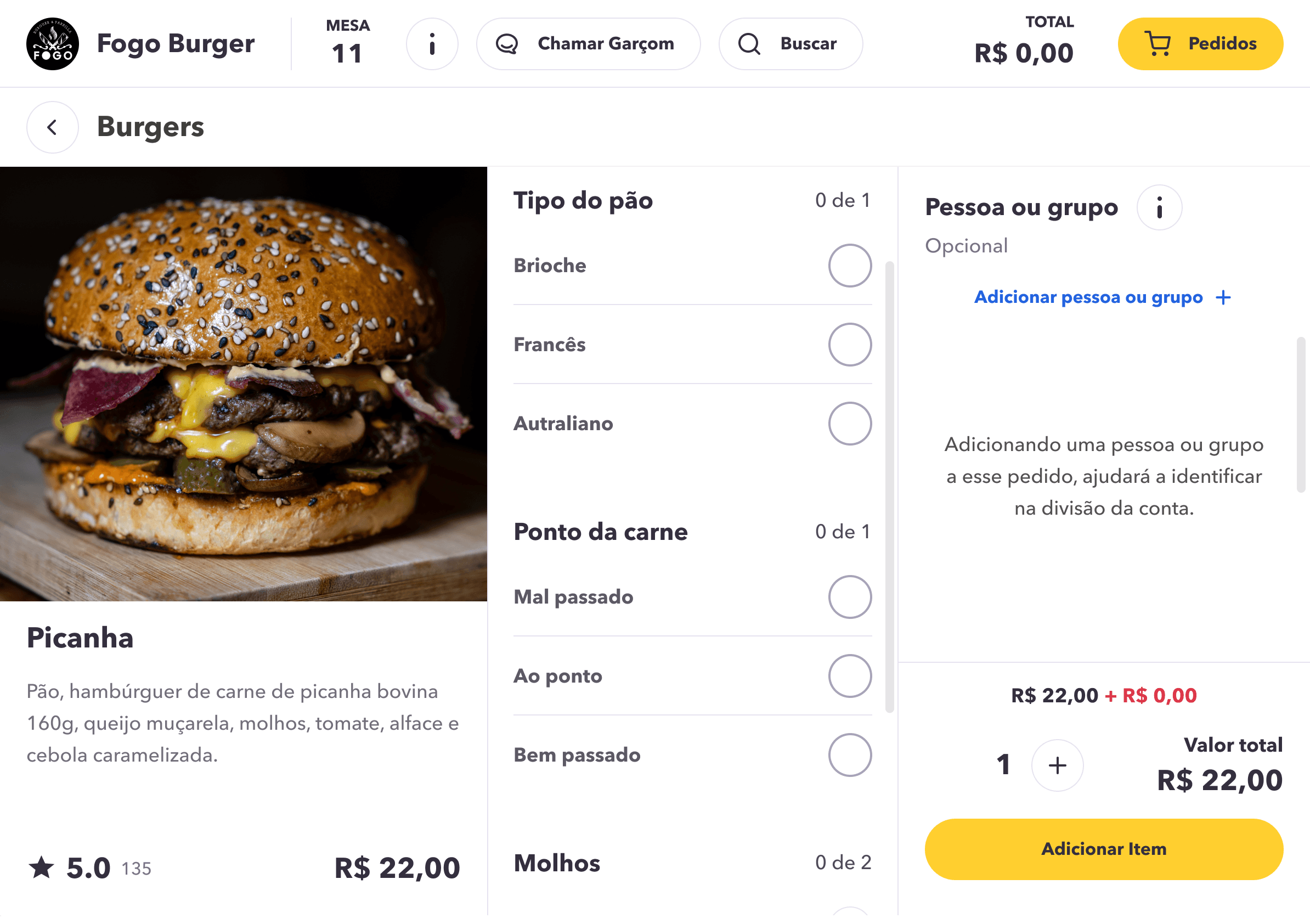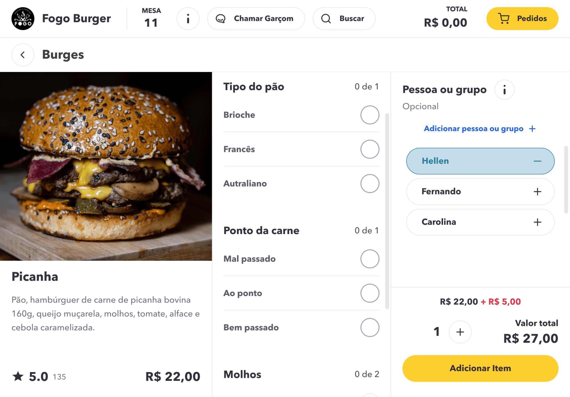 Changes were made to the menu item details and the process for selecting who is placing the order.